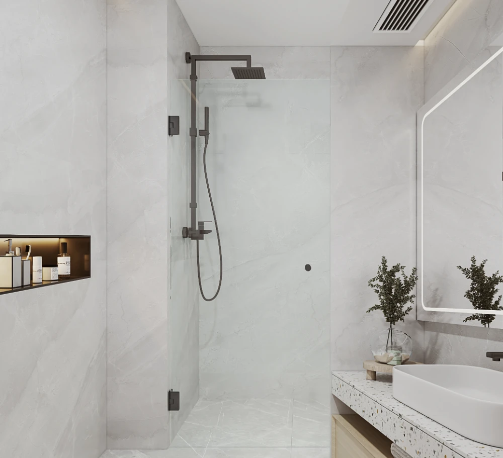 Crafted from premium 10mm clear tempered glass and installed with an L-shape wall bracket, it delivers both durability and style for contemporary bathrooms.